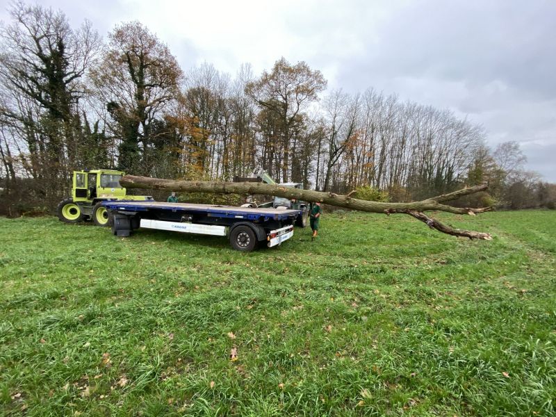 Mit Spezialanhänger wurde der Baumstamm zum Zielort gebracht.