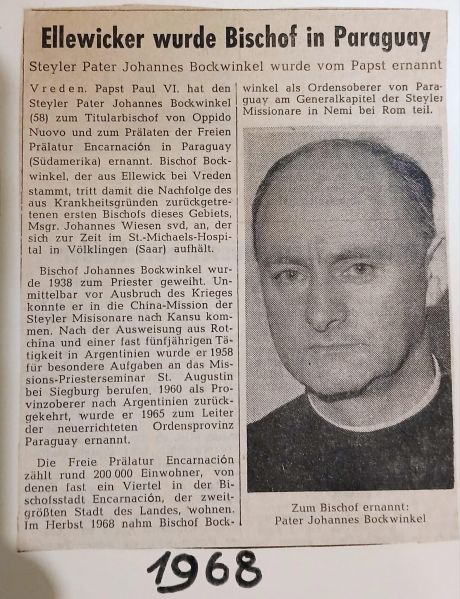 Zeitungsbericht von 1968 (aus dem Tagebuch von Johanna Wulff geb. Hemsing, von der Tochter Resi Borgmann erhalten)